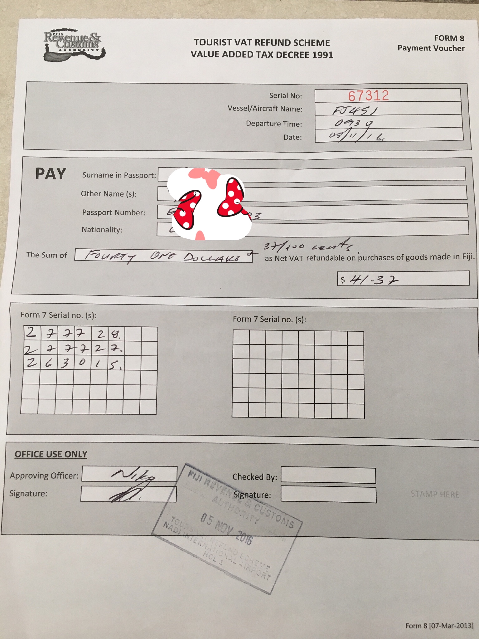 因為前一天下午在Nadi的市區買了一些化妝品什麼的要辦理退稅,我們的飛機是又是早上9:30起飛,所以我們提前七點就到機場了